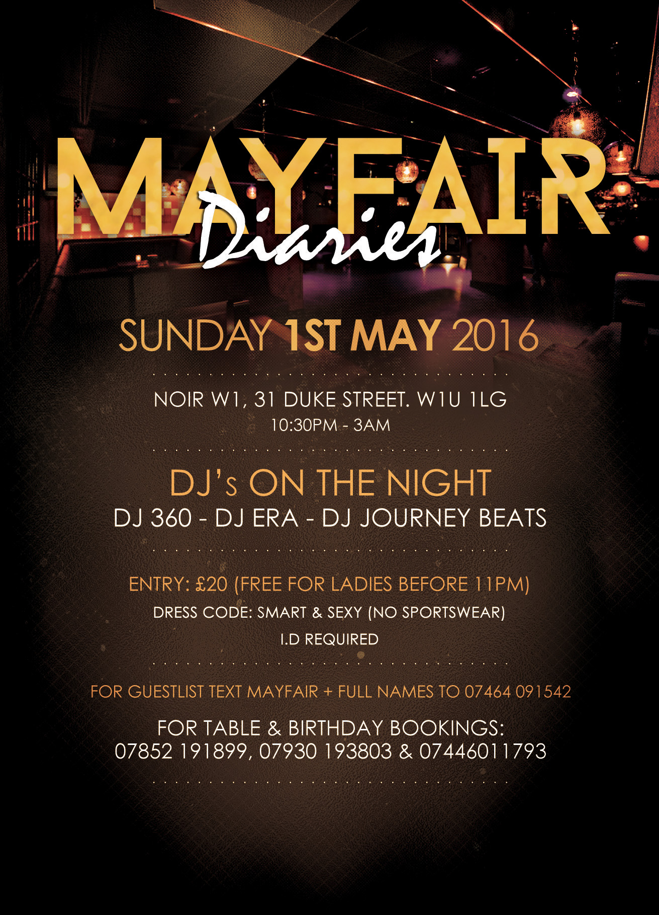 Mayfair Dairies - Bank Holiday Special 1st May 2016 @ Noir W1 in Mayfair Mayfair Diaries is back by popular demand this Bank Holiday. We figured you'll be needing somewhere to burn all the exces...
